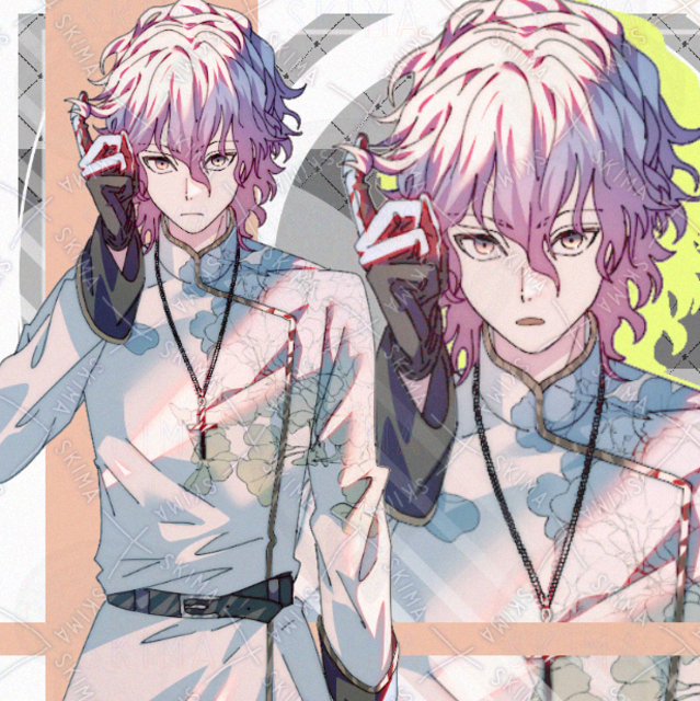 神父 男性 青年 現代ファンタジー ピンク髪 青色 表情差分あり