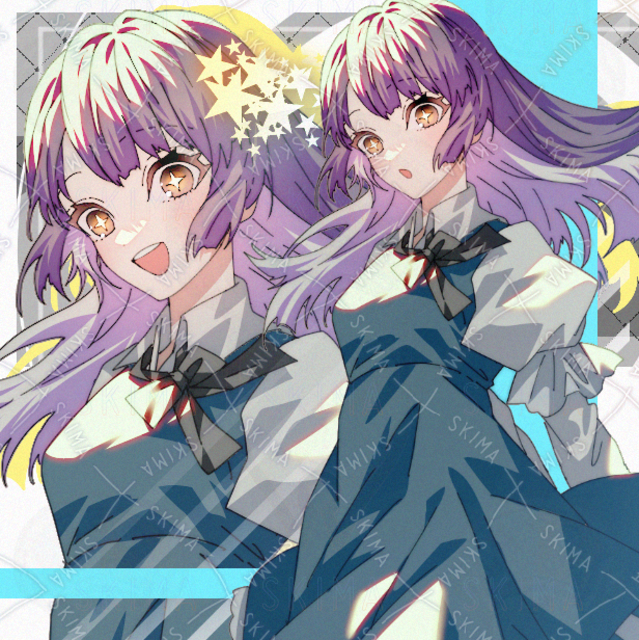 ワンピース 女性 女の子 現代ファンタジー 紫髪 きらきら ロング 星 差分あり