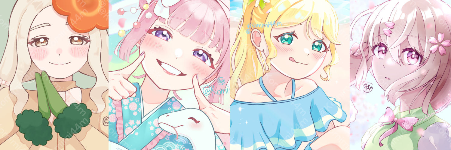 ご閲覧いただきありがとうございます!こみみと申します。 明るい色使い・かわいいテイストのイラストを得意としております! 性別問わず、等身・デフォルメ/ミニキャラどちらも対応可能です◎ クライアント様のご希望に添えるよう一枚一枚精一杯制作させていただきますので、まずはメッセージにてお気軽にご相談ください! よろしくお願いいたします。 ※ご依頼をいただく際は、お手数ですがプロフィール、コミッションの説明欄をご一読ください。 【お取引のおおまかな流れ】 1.メッセージからご相談・お見積り 2.ご依頼内容と料金の確認→お支払い 3.ラフやデザイン案の作成→提出 4.確認やリテイクのヒアリング 5.清書→完成品(透かし入り)の提出・確認 6.納品 ※原則、著作権の譲渡はいたしません。 ※ラフイラスト・完成イラストの自作発言、トレス、二次配布、AI学習への利用、公序良俗に反する利用はご遠慮ください。 X/Instagram→@Komimi44m