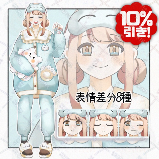 Girl in pajamas [8 different expressions