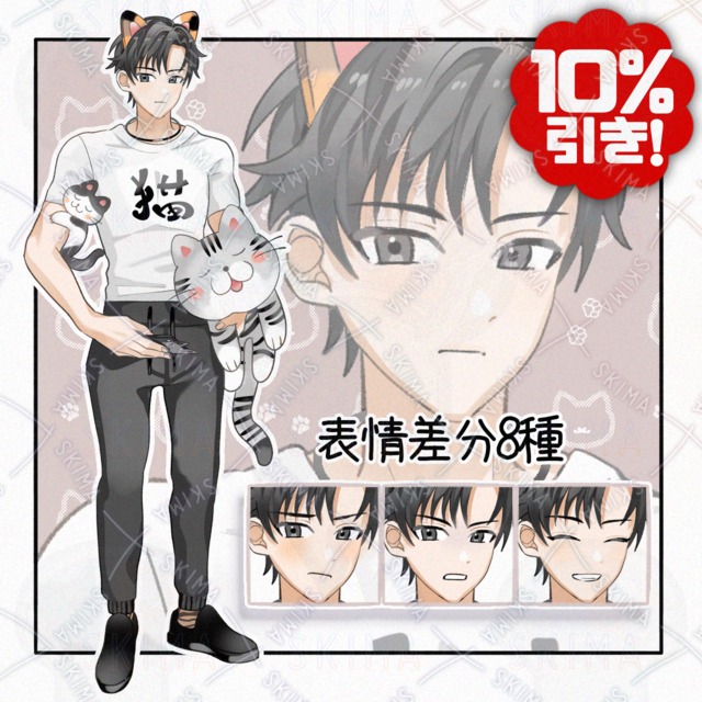 Young man who likes cats [8 different expressions].