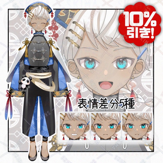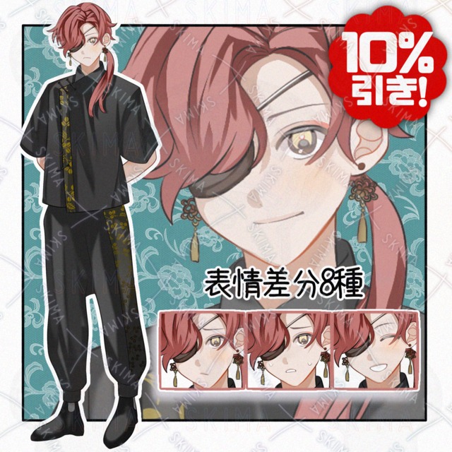 Chinese style with hidden eye patch [8 different expressions].