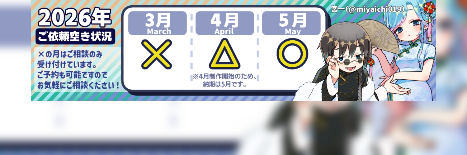 表情を描くのが好きです。美少女、筋肉、おじさん、人外(ケモノ、虫など)など幅広く描けます! 絵柄はギャラリーや下記をご参照ください。 Xfolio: https://xfolio.jp/portfolio/miyaichi019 YouTube: https://www.youtube.com/@miyaichi019 X: https://x.com/miyaichi019 料金表は目安です。お気軽にご相談ください。 二次創作は版元が許可をしている場合を除き受け付けておりません。(版元がガイドラインを公開しており、SKIMAで描いても問題がないと判断できる場合のみお受けします) AI学習はいかなる場合も固く禁止しています。 私が制作するイラストに生成AI出力物を使用することは一切ありません。 また、生成AIを使用または推進している個人様、企業様からのご依頼は謹んでお断りいたします。 I can draw a wide range of characters, including girls, muscles, men, and non-humans (beasts, insects, robots, etc.). Do your characters have a unique charm? I draw with a focus on that. I am also good at drawing facial expressions.