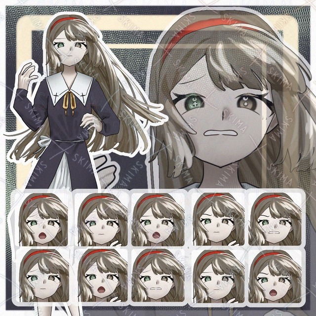 Girl with silver hair and blazer [8 different expressions].