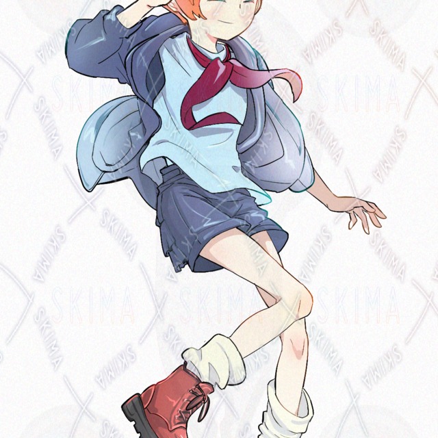 The girl with the blue hair and the uniform.