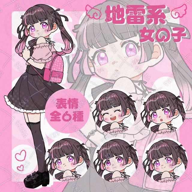 푸른 속눈썹 검은 머리 소녀 [표정 6종