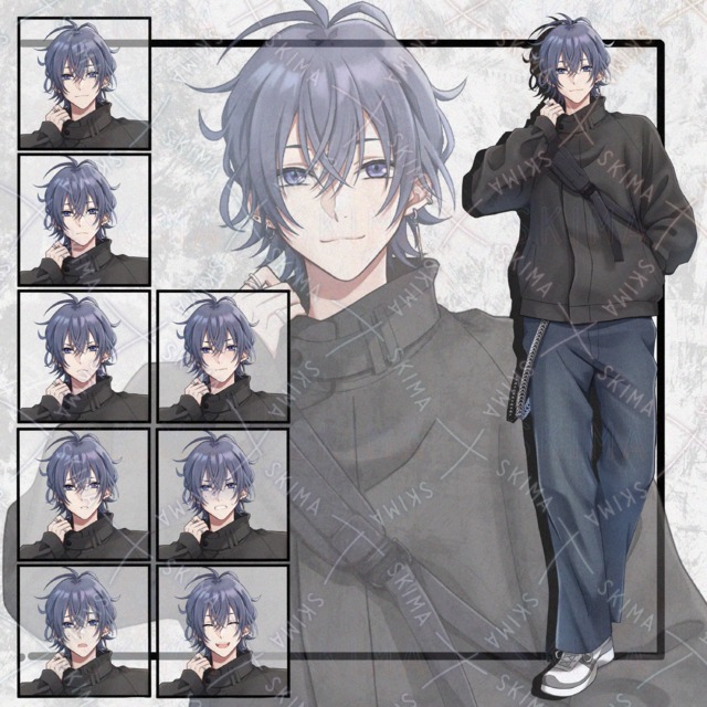 오드아이의 파란 머리 청년【표정 차이 10종】표정 차이