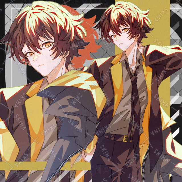 スーツ 男性 青年 現代ファンタジー 黄色 黒髪