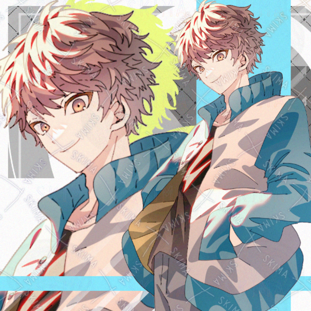 スタジャン 男性 青年 現代ファンタジー 水色 茶髪