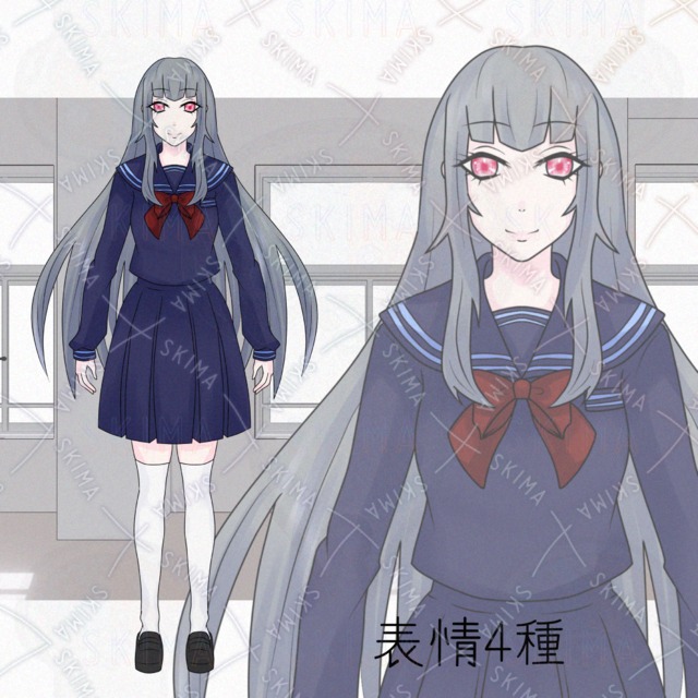 adopt【表情差分4種】少女 ロングヘアー 制服 ミニスカート セーラー服