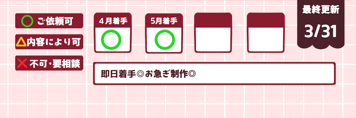 ご覧いただきありがとうございます。 イラストレーターの空咲ちはやと申します。 主にVtuber 製作、各種スタンプ・バッジ制作、 簡単なアニメーションGIF(スタンプや待機画面など) ドット絵などを制作しております! ▼これまでお受けしたご依頼 ◇LINE・Twitch・Youtubeなどのバッジやスタンプ・アニメーション等 ∟株式会社ブックリスタ/ Oshibana様 アプリ内スタンプ ∟1st PLACE / HIPPI様 TEAM ARIA内スタンプ ∟ Rush Gaming / WinRed 様 Youtubeスタンプ ∟ぶいすぽっ! / 一ノ瀬うるは様 Youtube・Twitchスタンプ ∟いちぷろEN / Zander Netherbrand様 Youtubeスタンプ・バッジ ∟Studio Coup / ゆきぶやー様 Twitchスタンプ ∟ VBOX / 朧様 Youtubeスタンプ ∟Vubble / M17-t0ユニカ様 Youtubeスタンプ・バッジ ∟株式会社DELTA-V / DELTA ORGANAIZATION様 SHOWROOM内イベント用 配信画面アニメーション ∟ふくやマスター様 bulibili・Youtubeスタンプ ◇GIFアニメーションスタンプ ◇Vtuberのデザイン・live2Dモデリング(20名以上担当) ◇各種SNSのアイコンやヘッダー ◇簡易なOP/ED/準備中 等のアニメーション ◇配信画面のデザイン ◇YouTubeのサムネイル(実況・歌・漫画動画) ◇YouTubeの漫画動画イラスト(ネーム~仕上げ) ◇ゲームのキャラクターデザイン・立ち絵 ◇アクスタ等グッズのイラスト ◇簡易な手書きアニメーション etc... ミニキャラが得意ですが、1枚絵なども制作可能です。 ポートフォリオやサンプル画像等で絵柄をご確認の上ご依頼ください。 ご質問やご相談だけでもお気軽にどうぞ! また、各種サイトでイラストのお仕事を募集しておりますので、 実績は多数ございます。ギャラリーなどからぜひご覧ください!
