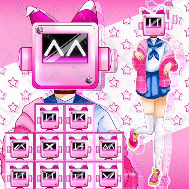 【表情差分10種類】セーラー服・ロボット風マスク・ピンク女子