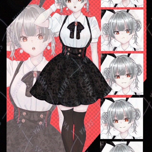 立ち絵/女の子/褐色肌/白髪/表情差分11個