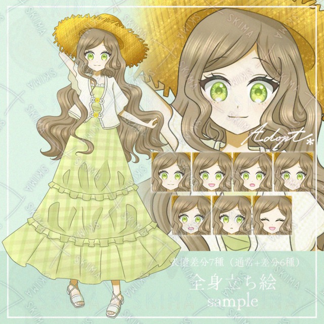 かぎ編みカーディガンと夏色ワンピースの少女*表情差分7種(通常+差分6種)