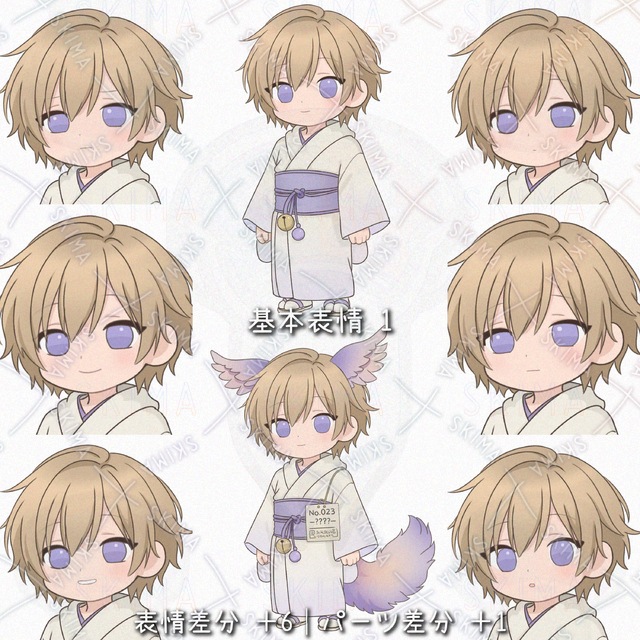 【SDキャラ/珍獣の子】表情差分6+パーツ差分付き|和装SDキャラクター
