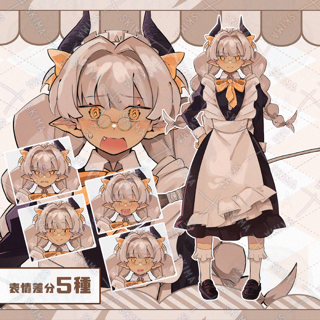 6 different expressions Twin-tailed mouse maid