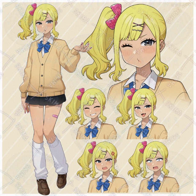 Gal with 5 different facial expressions and mini-characters