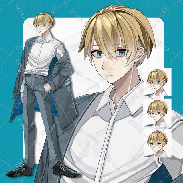 9 kinds of expressions] Blonde-haired, blue-eyed male standing posture